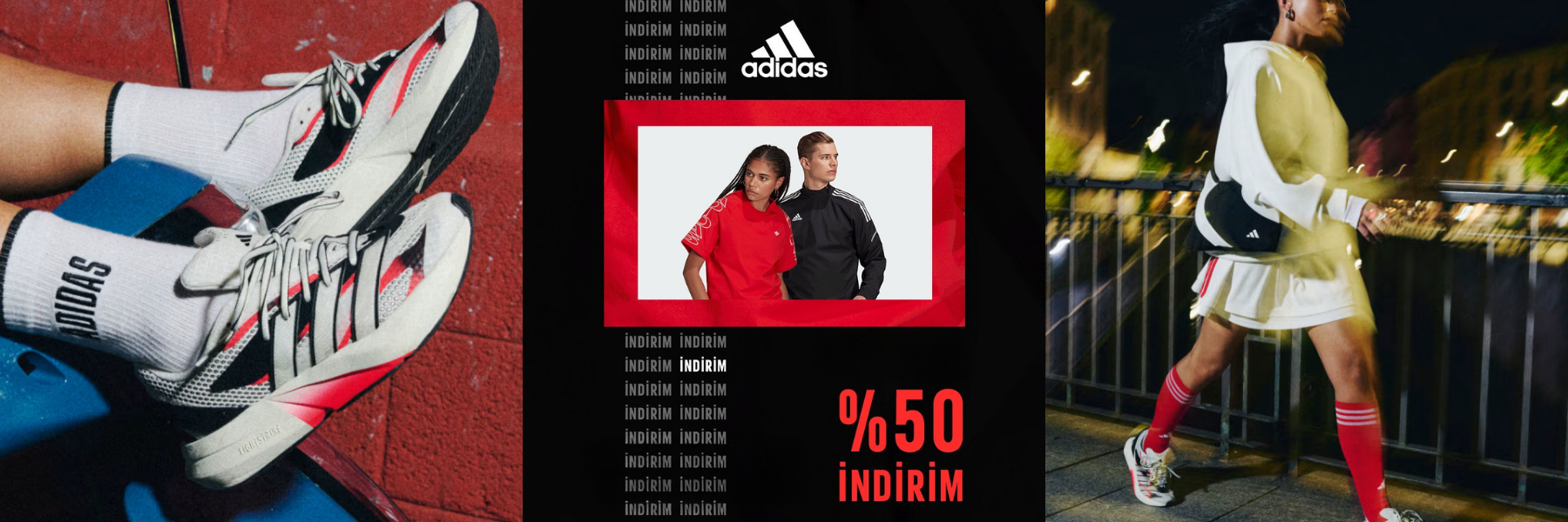 Spor bizi formda tutar. Farkındalığımızı artırır. Bizi bir araya getirir. Spor aracılığıyla hayatları değiştirme gücümüze inanıyoruz. Kimi zaman ilham verici sporcular, kimi zaman onların hikayeleri bizi harekete geçirir. En son teknolojileri sunan spor giyim ürünleri, performansını artırmaya hazır. Kişisel rekorunu kır. adidas koşuculara, basketbolculara, futbolculara ve tüm spor tutkunlarına kucak açıyor. Şehirden uzaklaşmayı seven yürüyüş tutkunundan hareketleri kitlelere ulaştıran yoga eğitmenine... Sahneden festivallere uzanan 3 bant müzik dünyasında da kendini gösteriyor. Spor giyim ürünlerimiz, son düdük çalana dek odağını korumanı sağlıyor. Yarış esnasında ve bitiş çizgisinde. Yaratıcılığıyla öne çıkanları desteklemek için buradayız. Oyunlarını ve hayatlarını ileri taşıyarak dünyayı değiştirmelerini sağlamak istiyoruz.